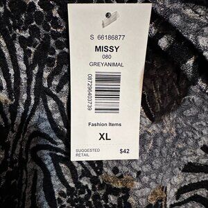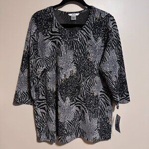 Alia Grey Animal Print Blouse Size XL 3/4 Sleeve NWT Women's