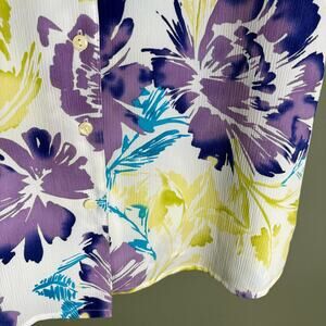Alia Purple & Yellow Floral Hawaiian Button Up Shirt - 18 - Women's Plus Size