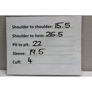 See measurements in images / listing and compare them to your best fitting garment to get sizing.