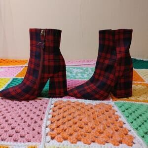 Alias Mae Ahara Bootie EU 36 Plaid Chunky Unique Statement Zipper Red Tartan