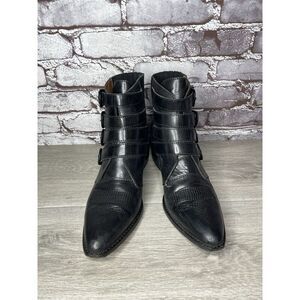 Alias Mae Black Leather Pointed Toe Buckle Straps Boots Women Sz 40EU/9.5M US