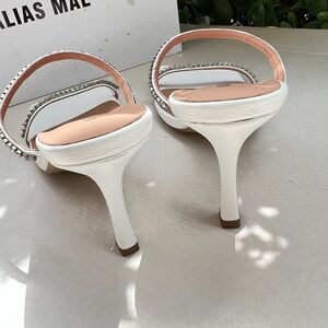 Alias Mae Lexa Mule Heel Sandal Size 39 in Ivory Leather Rhinestoned