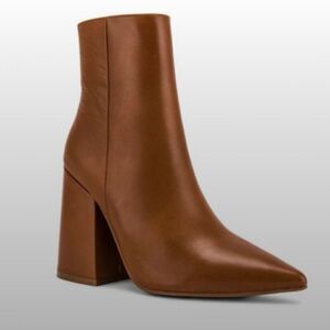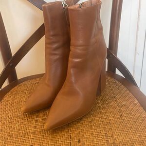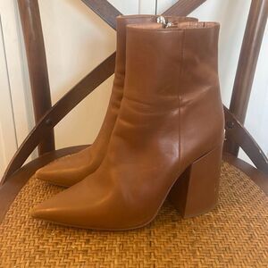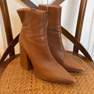 Alias Mae Australian designer leather 4” tan block heel booties with point toe. So gorgeous!