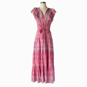 Alica Bell Lola Dress S Pink Floral Cotton Silk Boho Maxi Ruffle Tiered