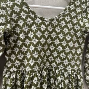 Alice + Ames long sleeve ballet dress size 6. Evergreen colorway is a deep green with creamy white star pattern all over. Great for Christmas! Excellent condition.