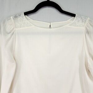 Alice And Olivia Silk Blouse Size Small Ivory With Lace Trim Long Sleeve Lux