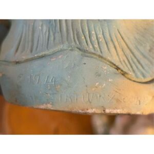 Alice & Andy Chalkware Statues Lawn Ornaments Universal Statuary 1974 has wear on colors and deterioration see pictures  approximately 9 x 7.5” each