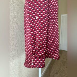 • Color: Burgundy with cream & black abstract dot print