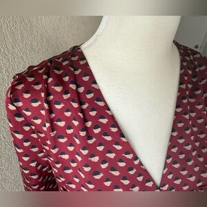 Alice Blue Burgundy Abstract Dot Print Button Front Blouse XSP