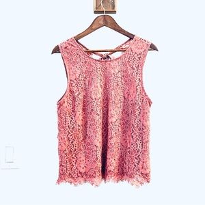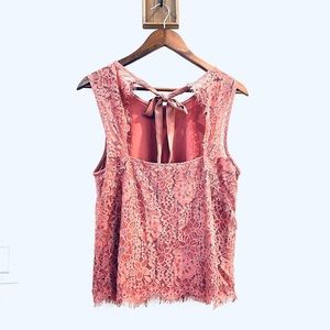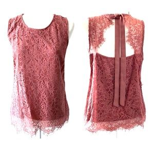 Alice Blue Dimina Lace Blouse Size LARGE Mauve Pink Open Back