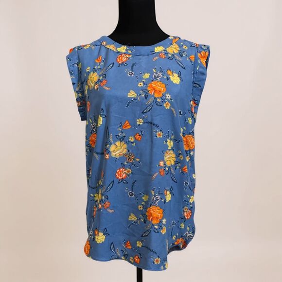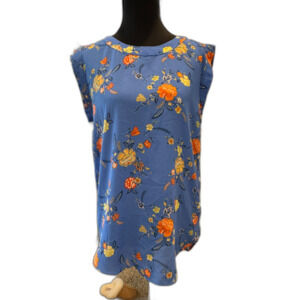 🌺 Alice Blue Oversized Sleeveless Blouse XS Blue Orange Print Work Casual Top