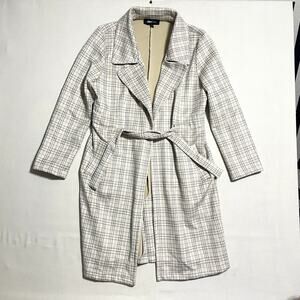 Alice Blue Plaid Trench Coat Duster Jacket Lightweight Belted Tan - Size L