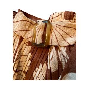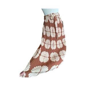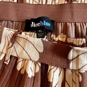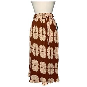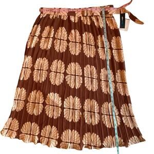 Alice Blue Pleated Boho Skirt Brown/Tan Leaf Print Buckle Tie Belt XL NWT