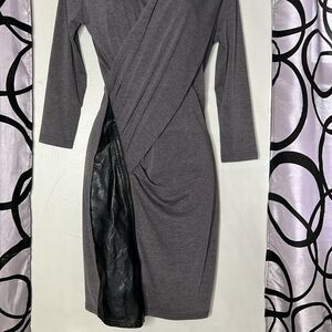 Alice Blue Ruched Faux Leather & Jersey Knit Dress