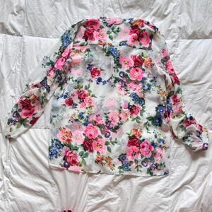 Alice Blue Stitch Fix Sheer vivid chiffon floral blouse boho chic cottagecorew