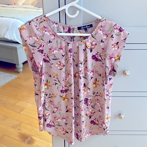 Beautiful top by Alice Blue. Like new and in excellent condition. Only wore a few times. Great with white or blue jeans. Blush pink/ purple top with purple and yellow/gold flowers.