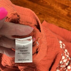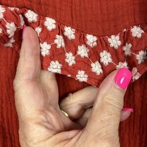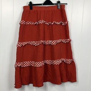 Alice Blue Womens Skirt L Burnt Orange White Floral Ruffles Waffle Texture Full