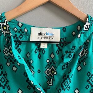 Alice Blue for Stitch Fix Teal Diamond Boho Sleeveless Blouse V-Neck Medium