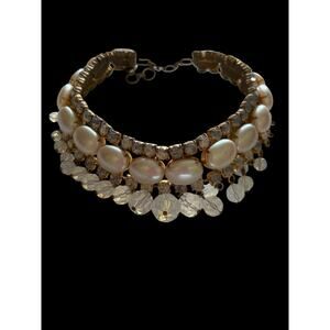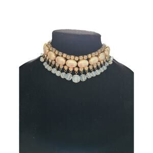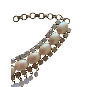 Alice Caviness Pink Pearl Choker Faceted Moonstone Dangle Statement Necklace