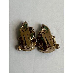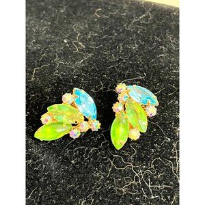 Alice Caviness Vintage Gold-Tone Clip-On Earrings W/ Green & Blue Rhinestones