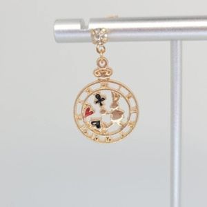 NEW! Fantastic Drop Dangle Gold Tone Enamel and 1 white round crystal earring. Playing card design. With the white rabbit and clock, mismatched shapes and length. Whimsical design. Great for cosplay or any occasion where fun is around.