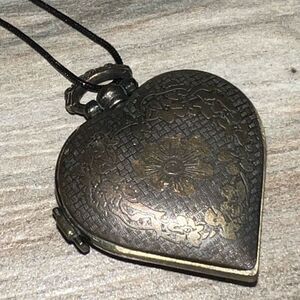 Alice In Wonderland Queen Of Hearts Ornate Puffed Heart Bronze Necklace Locket
