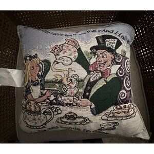 Alice In Wonderland Tea Party Tapestry Pillow folk art Reversible Rare Unique