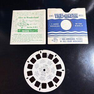 This vintage View-Master reel brings the classic Alice in Wonderland story to life with vivid Kodachrome images. A collectible piece for enthusiasts.