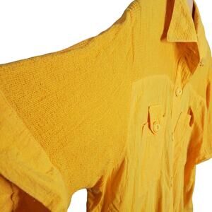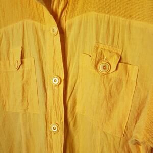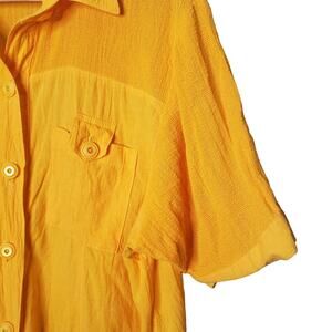 Alice Martin Vintage Marigold button up top. This top has two front button pockets, a butterfly collar and elastic waistband. In pristine condition. Measures 24" pit to pit and 22.5" in length.