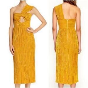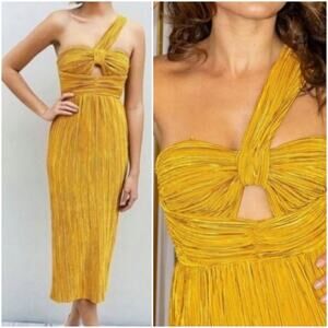 Alice McCall Dress Power Lady Pleated One Shoulder Midi in Sunset Yellow Size 4