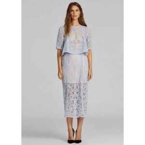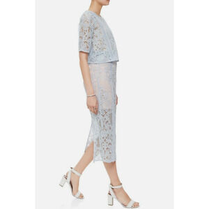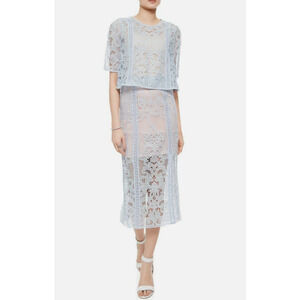 Alice McCall Florence Pastel Silver Blue Lace Midi Skirt - Size US6