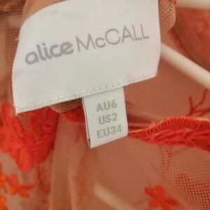 Alice McCall Honeymoon lace nude sheer overlay top in Orange was purchased in Melbourne Australia for an event that was ultimately cancelled. This piece is brand new without tags. The lace makes it a modest design with a flash of beautiful color.
