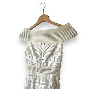 Alice McCall Lunar Eclipse Midi Dress Off Shoulder Mesh Devoré Oatmeal 0 Women’s