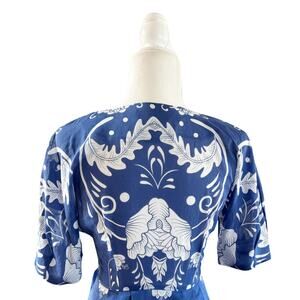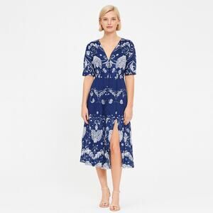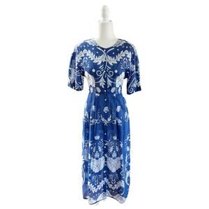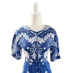 Alice McCall Maggie May Blue White Midi Dress 0 Silk Cotton