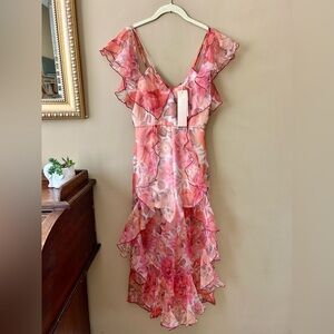 Alice McCall Oh Me Oh My Jumpsuit Midi Dress Pink Floral Organza Silk Size 2 NWT
