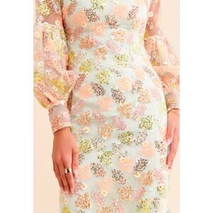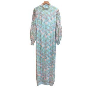 Alice Mccall Mint Blue Celestial Maxi Gown Dress Sequins Long Bishop Sleeve 8