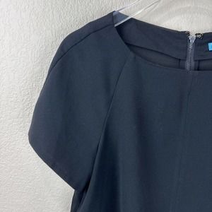This Alice + Olivia black chiffon blouse is perfect for the stylish working woman. With a boat neckline, cap sleeves, and a zip closure, this blouse offers a classic and professional look. The blouse is made of 100% polyester and is recommended to be dry cleaned only.