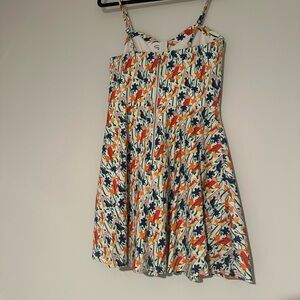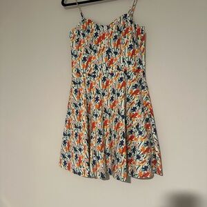Alice + Olivia 4 Nella Sun Dress Fit Flare Bird Parrot Print Mini Button NWOT