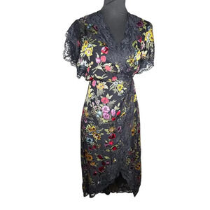 Alice & Olivia Adele Wrap Floral Lace Midi Dress