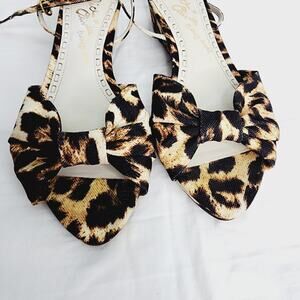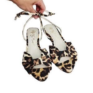 Alice + Olivia Alexi Leopard Print Open Toe Bow Wedge Sandal Women's Size 10