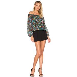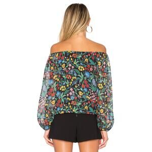 Alice + Olivia Alta Peasant Top Chelsea Wildflower & Black