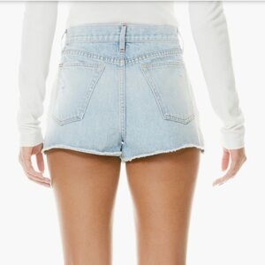 From A + O's capsule collection of jeans, with love, comes this classic pair of high-rise nonstretch cutoffs in a just-right light wash with threadbare hems. The affirmation 'You look amazing' is embroidered onto the interior waistband.