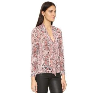 Alice + Olivia Anabel Paisley Tie Neck Crepe Boho Blouse