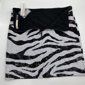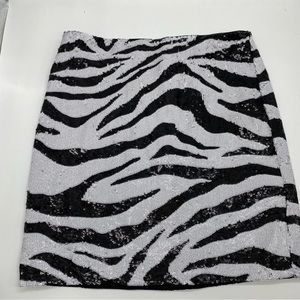 Alice + Olivia Animal Print Zebra Ramos Sequin Mini Skirt Size 8