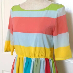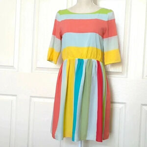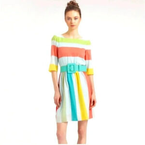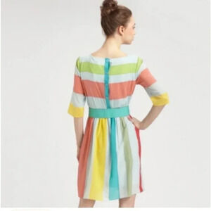 Anita Striped Silk Dress pretty pastel stripes lend a touch of whimsy to this airy silk frock. Cinched at the waist. Button Back. 96% Silk / 4% Spandex.