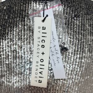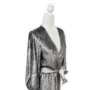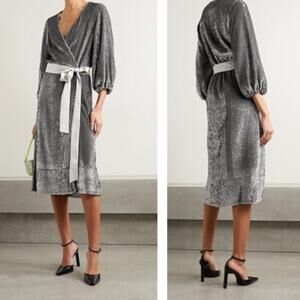 Alice + Olivia Anne Embellished Sequin Belted Wrap Dress Silver 0 NWT