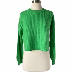 Alice + Olivia Ansley Cashmere Sweater Green Ribbed Knit Cropped Pullover M