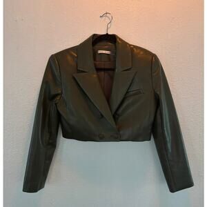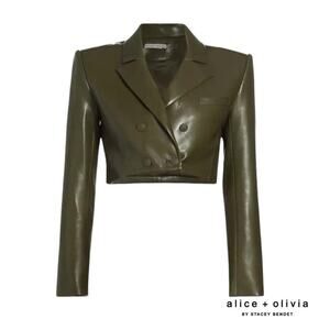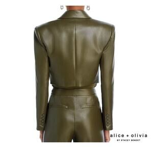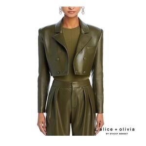 Alice + Olivia Anthony Cropped Olive Vegan Leather Blazer Size M Medium 8
