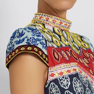 This features cap sleeves, a maxi length, turtleneck and back neck button closure. The absolute prettiest patchwork of floral prints makes it feel completely one-of-a-kind.