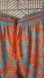 Chic pants with a vibrant pattern. Features striking blue and orange hues.